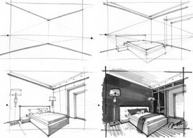 一点透视/两点透视/观察方法,两点透视绘制方法及技巧。绘制场景练习。 |